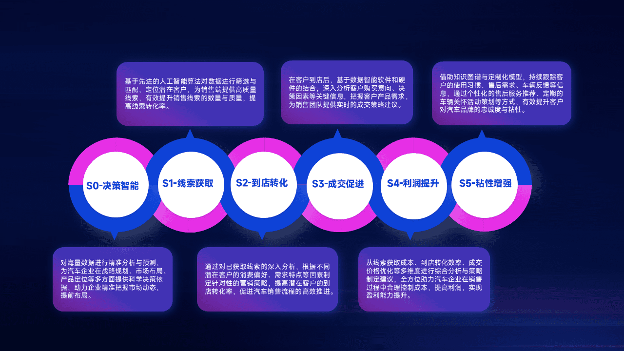 通过拓宽潜在客户来源、、、、优化线索分配并提高到店转化率,,,以增强销售效率。。。。同时,,,,利用线索数据不断优化分析模型,,,有效提升转化率,,,,扩大营销影响力。。。